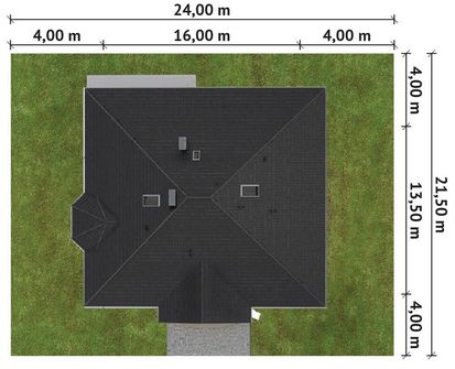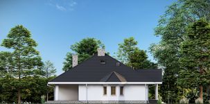 Graficzne opracowanie rzutów poglądowych widocznych na karcie projektu zostało wykonane przez Extradom.pl. Prezentowane przez Extradom.pl wizualizacje wykonane zostały przez autora projektu i należy poczytywać je jedynie za przykład i propozycję wykończenia, wizję architektoniczną autora projektu. Ostateczne wykończenie budynku może nastąpić na wiele sposobów. Szczegółowe rozwiązania zastosowane w oferowanej dokumentacji - w tym również ilość, lokalizacje i wygląd okien, drzwi, kominów - mogą w niewielkim stopniu różnić się od prezentowanej wizualizacji budynku.