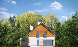 Graficzne opracowanie rzutów poglądowych widocznych na karcie projektu zostało wykonane przez Extradom.pl. Prezentowane przez Extradom.pl wizualizacje wykonane zostały przez autora projektu i należy poczytywać je jedynie za przykład i propozycję wykończenia, wizję architektoniczną autora projektu. Ostateczne wykończenie budynku może nastąpić na wiele sposobów. Szczegółowe rozwiązania zastosowane w oferowanej dokumentacji - w tym również ilość, lokalizacje i wygląd okien, drzwi, kominów - mogą w niewielkim stopniu różnić się od prezentowanej wizualizacji budynku.
