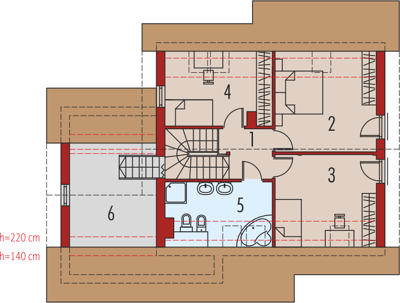 Fundamenty: ławy, bloczki keramzytobetonowe bloczki Leca ® BLOK fundamentowy 24 cm, ocieplenie Leca ® KERAMZYT izolacyjny L Ściany zewnętrzne: murowane, dwuwarstwowe, keramzytobetonowe Pustaki Leca ® BLOK 24, ocieplenie wełna mineralna 20 cm. Ściany wewnętrzne: murowane, keramzytobetonowe Pustaki Leca ® BLOK 24, ścianki działowe keramzytobetonowe Pustaki Leca ® BLOK 12 cm Podłoga na gruncie: płyta betonowa, na podłożu z Leca ® KERAMZYTU impregnowanego. Strop: strop międzypiętrowy gęstożebrowy Teriva. Dach: konstrukcja drewniana, ocieplenie wełna mineralna 30 cm, dachówka ceramiczna lub cementowa Izolacje termiczne i akustyczne: wełna mineralna, Leca ® KERAMZYT Hydroizolacje: technologia Weber Deitermann Zaprawy, tynki, wylewki: gotowe zaprawy budowlane Weber. Inne: schody wewnętrzne drewniane. Ogrzewanie: kocioł gazowy, rozprowadzenie ciepła: grzejniki. Wentylacja: grawitacyjna. Elewacje: tynk cienkowarstwowy silikatowo-silikonowy oraz okładzina kamienna. Stolarka: drewniana, PVC lub aluminiowa, rolety zewnętrzne np. w systemie CleverBox firmy BeClever. Okna połaciowe: rozwiązania technologiczne np. firmy FAKRO.