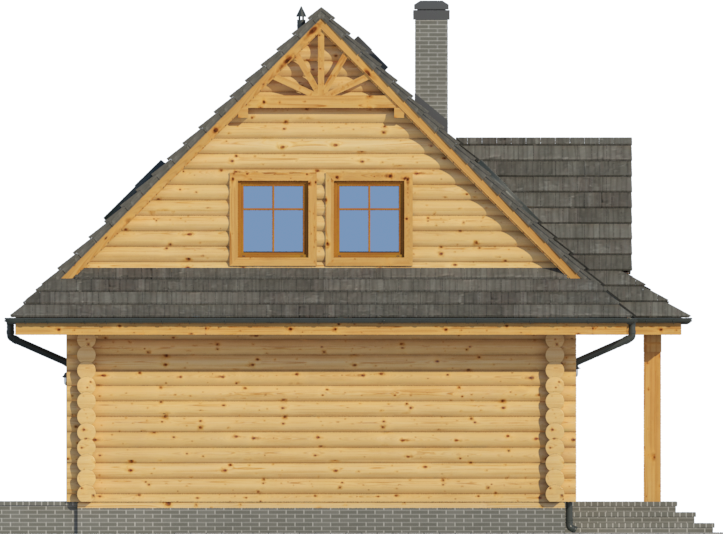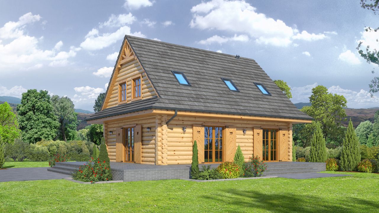 Wysokość ścianki kolankowej: 1.01 m. Strop: drewniany. Pokrycie dachu: dachówka gontopodobna Gerard Corona. Ściany zewnętrzne: płazy drewniane. Ściany wewnętrzne: płazy drewniane. Typ ogrzewania: kocioł gazowy lub kocioł na paliwo stałe.
