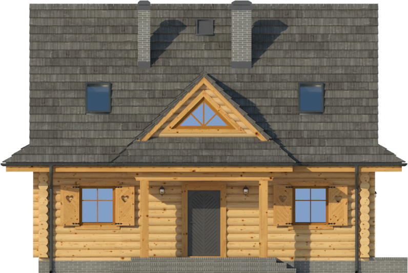 Graficzne opracowanie rzutów poglądowych widocznych na karcie projektu zostało wykonane przez Extradom.pl. Prezentowane przez Extradom.pl wizualizacje wykonane zostały przez autora projektu i należy poczytywać je jedynie za przykład i propozycję wykończenia, wizję architektoniczną autora projektu. Ostateczne wykończenie budynku może nastąpić na wiele sposobów. Szczegółowe rozwiązania zastosowane w oferowanej dokumentacji - w tym również ilość, lokalizacje i wygląd okien, drzwi, kominów - mogą w niewielkim stopniu różnić się od prezentowanej wizualizacji budynku.