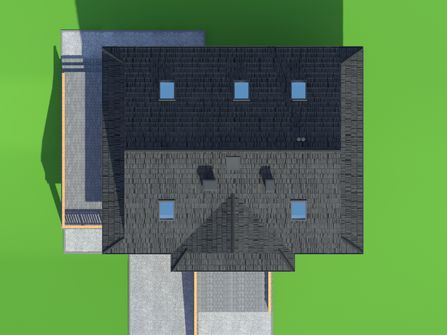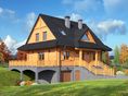 Graficzne opracowanie rzutów poglądowych widocznych na karcie projektu zostało wykonane przez Extradom.pl. Prezentowane przez Extradom.pl wizualizacje wykonane zostały przez autora projektu i należy poczytywać je jedynie za przykład i propozycję wykończenia, wizję architektoniczną autora projektu. Ostateczne wykończenie budynku może nastąpić na wiele sposobów. Szczegółowe rozwiązania zastosowane w oferowanej dokumentacji - w tym również ilość, lokalizacje i wygląd okien, drzwi, kominów - mogą w niewielkim stopniu różnić się od prezentowanej wizualizacji budynku.