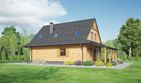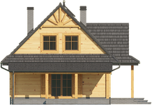 Wysokość ścianki kolankowej: 0.78 m. Strop: drewniany. Pokrycie dachu: dachówka gontopodobna Gerard Corona. Ściany zewnętrzne: płazy drewniane + wełna mineralna + deska. Ściany wewnętrzne: płazy drewniane. Typ ogrzewania: kocioł gazowy lub kocioł na paliwo stałe. Instalacje dodatkowe: instalacja solarna. Inne: okna połaciowe Fakro.