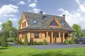 Graficzne opracowanie rzutów poglądowych widocznych na karcie projektu zostało wykonane przez Extradom.pl. Prezentowane przez Extradom.pl wizualizacje wykonane zostały przez autora projektu i należy poczytywać je jedynie za przykład i propozycję wykończenia, wizję architektoniczną autora projektu. Ostateczne wykończenie budynku może nastąpić na wiele sposobów. Szczegółowe rozwiązania zastosowane w oferowanej dokumentacji - w tym również ilość, lokalizacje i wygląd okien, drzwi, kominów - mogą w niewielkim stopniu różnić się od prezentowanej wizualizacji budynku.