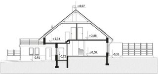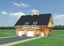 Graficzne opracowanie rzutów poglądowych widocznych na karcie projektu zostało wykonane przez Extradom.pl. Prezentowane przez Extradom.pl wizualizacje wykonane zostały przez autora projektu i należy poczytywać je jedynie za przykład i propozycję wykończenia, wizję architektoniczną autora projektu. Ostateczne wykończenie budynku może nastąpić na wiele sposobów. Szczegółowe rozwiązania zastosowane w oferowanej dokumentacji - w tym również ilość, lokalizacje i wygląd okien, drzwi, kominów - mogą w niewielkim stopniu różnić się od prezentowanej wizualizacji budynku.
