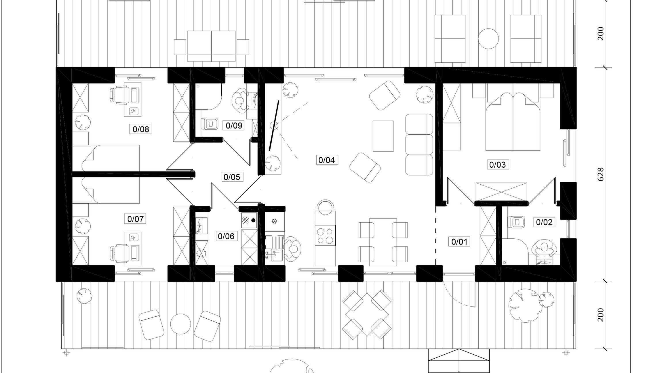 ława fundamentowa; ściany zewnętrzne: pustak 24cm, ocieplenie 20 cm; ściany wewnętrzne: pustak 12cm; strop drewniany; konstrukcja i pokrycie dachu: drewniana jętkowa, blacha; elewacja: tynk, deska;