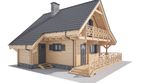 fundamenty: ława fundamentowa ściany zewnętrzne: z balika drewnianego (6cm) + szkieletowa z wełną izolacyjną 20cm ściany wewnętrzne: parter: balik drewniany (6cm) lub konstrukcja szkieletowa z płytami g-k (10cm) piętro: konstrukcja szkieletowa z płytami g-k (10cm) strop drewniany konstrukcja i pokrycie dachu: drewniana, krokwiowo-jętkowa, blachodachówka lub blacha na rąbek elewacja: balik drewniany 6cm