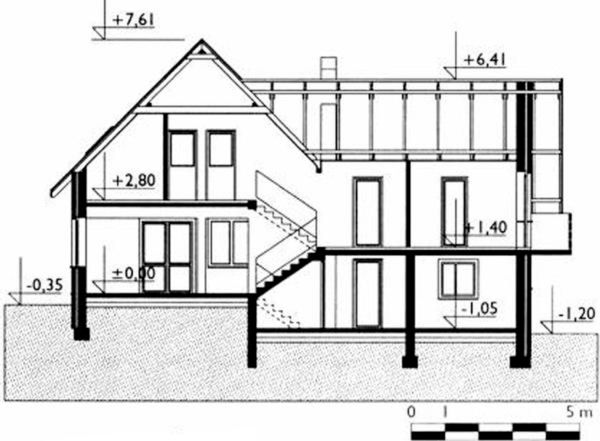 murowana – ceramika ściany zewnętrzne: cegła kratówka + styropian + cegła kratówka ściany wewnętrzne: cegła kratówka strop: żelbetowy konstrukcja dachu: drewniana, jętkowa rodzaj schodów: żelbetowe