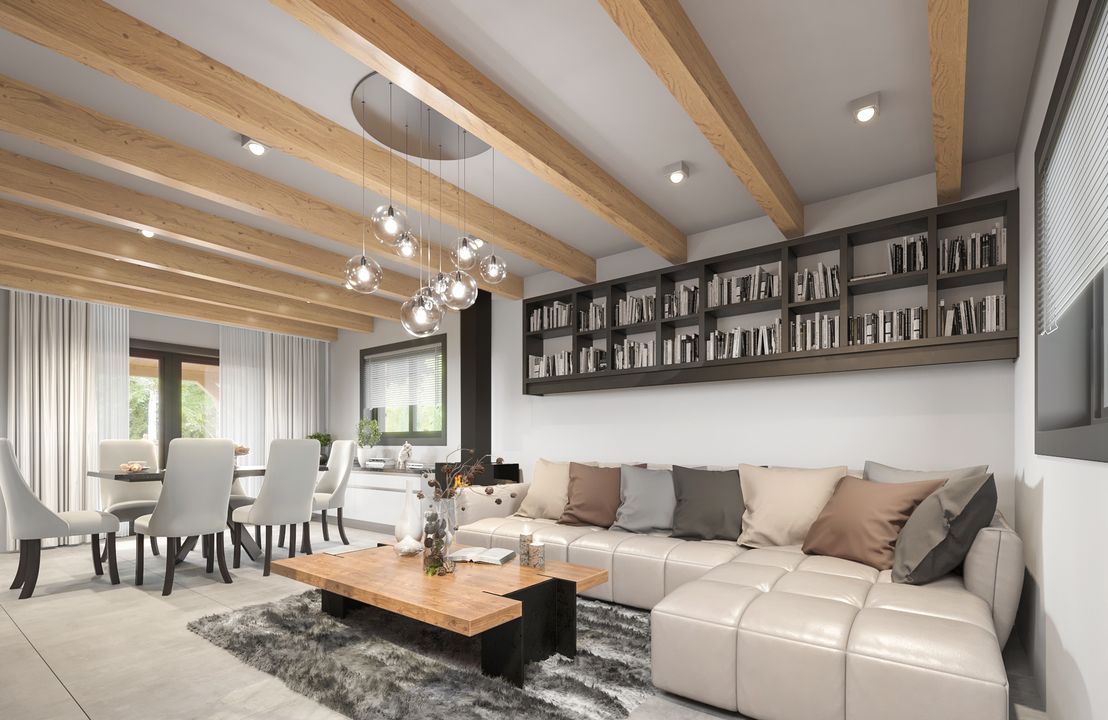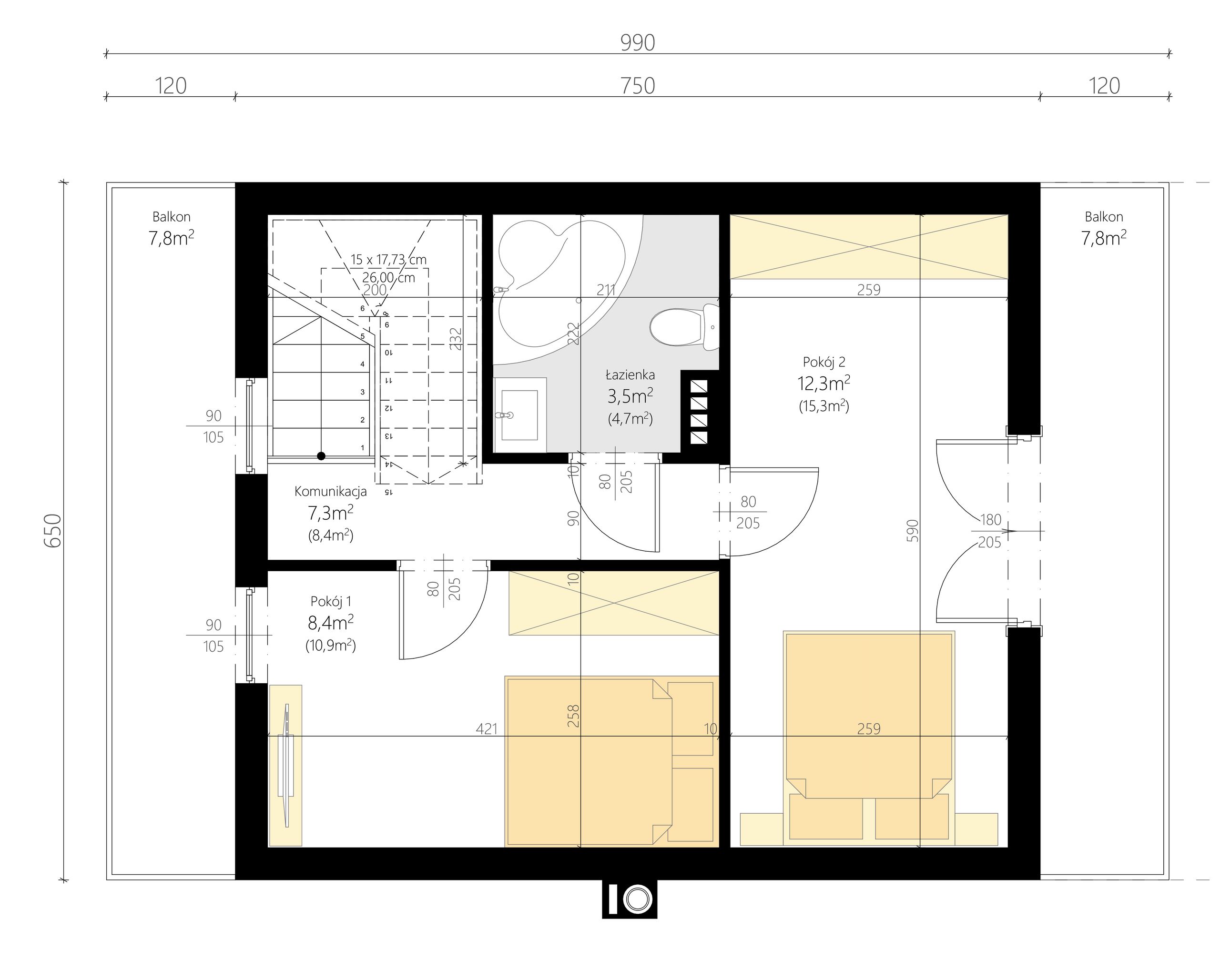 Graficzne opracowanie rzutów poglądowych widocznych na karcie projektu zostało wykonane przez Extradom.pl. Prezentowane przez Extradom.pl wizualizacje wykonane zostały przez autora projektu i należy poczytywać je jedynie za przykład i propozycję wykończenia, wizję architektoniczną autora projektu. Ostateczne wykończenie budynku może nastąpić na wiele sposobów. Szczegółowe rozwiązania zastosowane w oferowanej dokumentacji - w tym również ilość, lokalizacje i wygląd okien, drzwi, kominów - mogą w niewielkim stopniu różnić się od prezentowanej wizualizacji budynku.