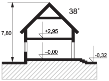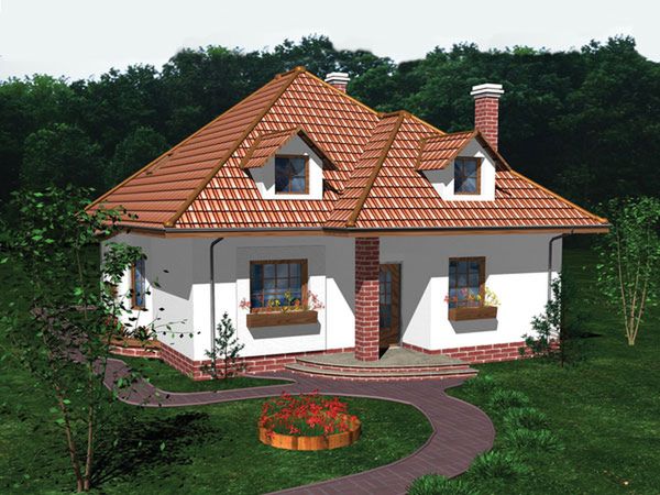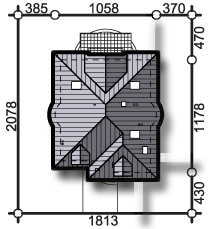 Graficzne opracowanie rzutów poglądowych widocznych na karcie projektu zostało wykonane przez Extradom.pl. Prezentowane przez Extradom.pl wizualizacje wykonane zostały przez autora projektu i należy poczytywać je jedynie za przykład i propozycję wykończenia, wizję architektoniczną autora projektu. Ostateczne wykończenie budynku może nastąpić na wiele sposobów. Szczegółowe rozwiązania zastosowane w oferowanej dokumentacji - w tym również ilość, lokalizacje i wygląd okien, drzwi, kominów - mogą w niewielkim stopniu różnić się od prezentowanej wizualizacji budynku.
