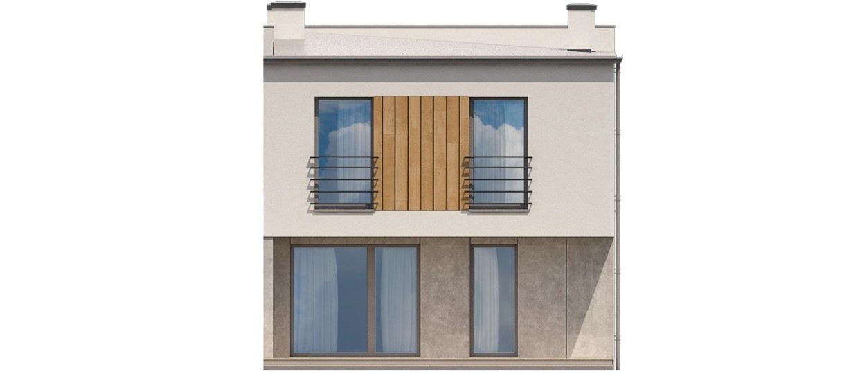 Graficzne opracowanie rzutów poglądowych widocznych na karcie projektu zostało wykonane przez Extradom.pl. Prezentowane przez Extradom.pl wizualizacje wykonane zostały przez autora projektu i należy poczytywać je jedynie za przykład i propozycję wykończenia, wizję architektoniczną autora projektu. Ostateczne wykończenie budynku może nastąpić na wiele sposobów. Szczegółowe rozwiązania zastosowane w oferowanej dokumentacji - w tym również ilość, lokalizacje i wygląd okien, drzwi, kominów - mogą w niewielkim stopniu różnić się od prezentowanej wizualizacji budynku.