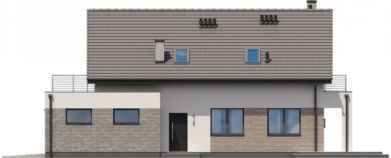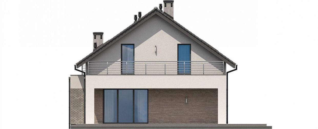 Graficzne opracowanie rzutów poglądowych widocznych na karcie projektu zostało wykonane przez Extradom.pl. Prezentowane przez Extradom.pl wizualizacje wykonane zostały przez autora projektu i należy poczytywać je jedynie za przykład i propozycję wykończenia, wizję architektoniczną autora projektu. Ostateczne wykończenie budynku może nastąpić na wiele sposobów. Szczegółowe rozwiązania zastosowane w oferowanej dokumentacji - w tym również ilość, lokalizacje i wygląd okien, drzwi, kominów - mogą w niewielkim stopniu różnić się od prezentowanej wizualizacji budynku.