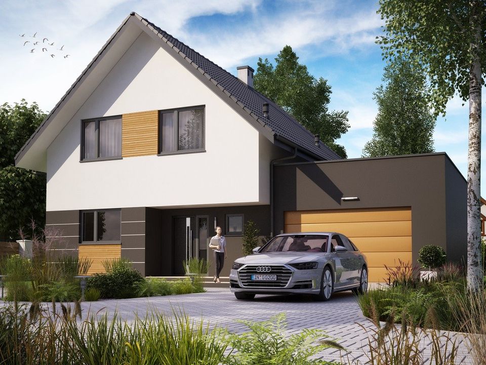 Fundamenty: ławy fundamentowe/stopy fundamentowe. Ściany zewnętrzne: gazobeton +20 cm styropianu. Strop: Teriva / strop nad garażem drewniany. Elewacje: tynk cienkowarstwowy, okładzina drewniana.