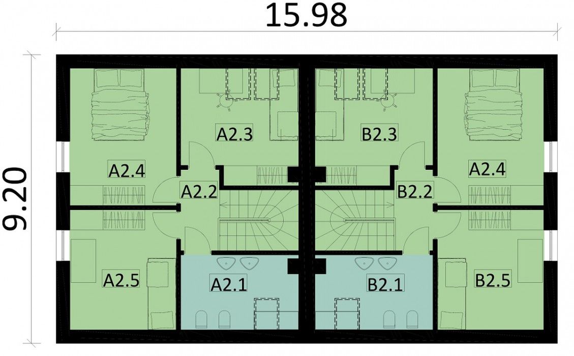 Projekt dostępny w konfiguracjach: bliźniak z segmentami lewym i prawym na osobnych dokumentacjach albo bliźniak na jednej dokumentacji albo jednorodzinny dwulokalowy. Dokumentacja zabezpieczona jest specjalną plombą, której usunięcie uniemożliwi jej zwrot oraz wymianę. Zapraszamy do zamówienia przed zakupem rysunków szczegółowych projektu oraz analizy posiadanej działki w celu upewnienia się, że wybrany projekt domu idealnie na nią pasuje.