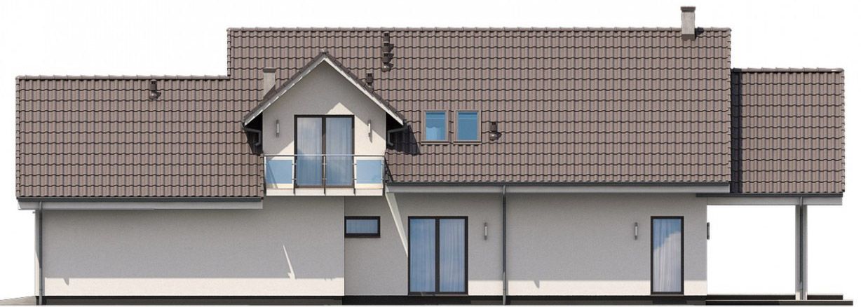 Graficzne opracowanie rzutów poglądowych widocznych na karcie projektu zostało wykonane przez Extradom.pl. Prezentowane przez Extradom.pl wizualizacje wykonane zostały przez autora projektu i należy poczytywać je jedynie za przykład i propozycję wykończenia, wizję architektoniczną autora projektu. Ostateczne wykończenie budynku może nastąpić na wiele sposobów. Szczegółowe rozwiązania zastosowane w oferowanej dokumentacji - w tym również ilość, lokalizacje i wygląd okien, drzwi, kominów - mogą w niewielkim stopniu różnić się od prezentowanej wizualizacji budynku.