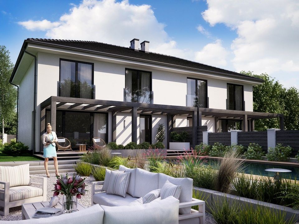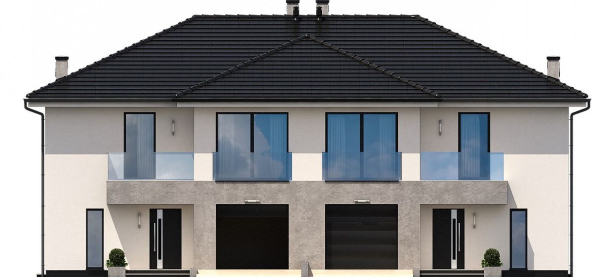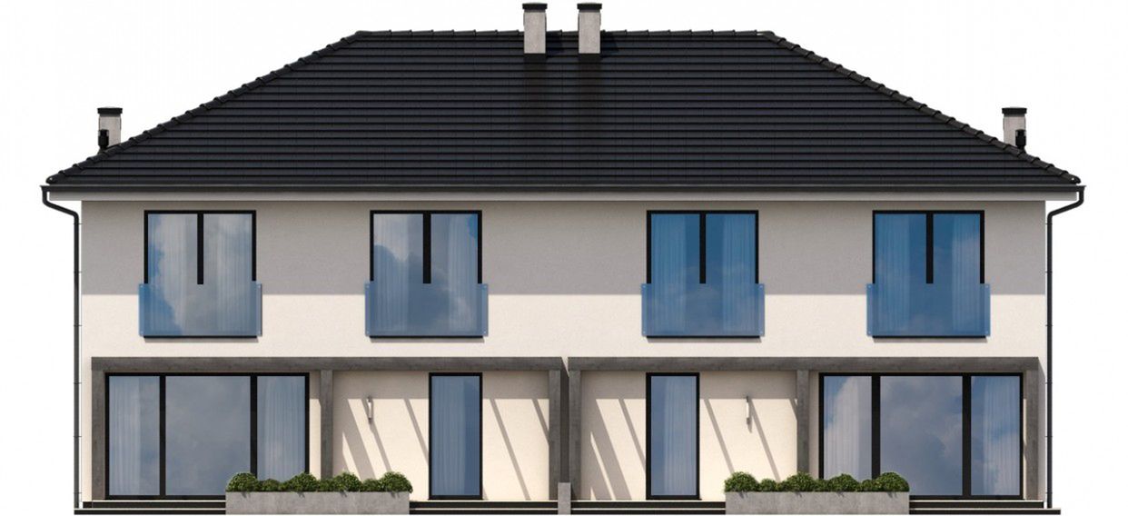 Projekt dostępny w konfiguracjach: bliźniak z segmentami lewym i prawym na osobnych dokumentacjach albo bliźniak na jednej dokumentacji albo jednorodzinny dwulokalowy. Dokumentacja zabezpieczona jest specjalną plombą, której usunięcie uniemożliwi jej zwrot oraz wymianę. Zapraszamy do zamówienia przed zakupem rysunków szczegółowych projektu oraz analizy posiadanej działki w celu upewnienia się, że wybrany projekt domu idealnie na nią pasuje.