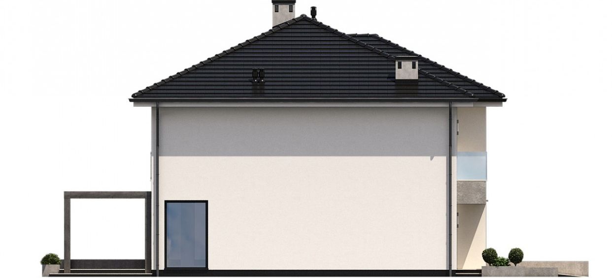Graficzne opracowanie rzutów poglądowych widocznych na karcie projektu zostało wykonane przez Extradom.pl. Prezentowane przez Extradom.pl wizualizacje wykonane zostały przez autora projektu i należy poczytywać je jedynie za przykład i propozycję wykończenia, wizję architektoniczną autora projektu. Ostateczne wykończenie budynku może nastąpić na wiele sposobów. Szczegółowe rozwiązania zastosowane w oferowanej dokumentacji - w tym również ilość, lokalizacje i wygląd okien, drzwi, kominów - mogą w niewielkim stopniu różnić się od prezentowanej wizualizacji budynku.