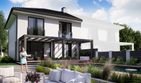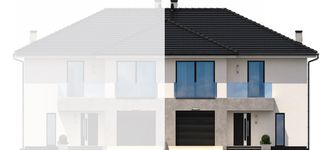 Graficzne opracowanie rzutów poglądowych widocznych na karcie projektu zostało wykonane przez Extradom.pl. Prezentowane przez Extradom.pl wizualizacje wykonane zostały przez autora projektu i należy poczytywać je jedynie za przykład i propozycję wykończenia, wizję architektoniczną autora projektu. Ostateczne wykończenie budynku może nastąpić na wiele sposobów. Szczegółowe rozwiązania zastosowane w oferowanej dokumentacji - w tym również ilość, lokalizacje i wygląd okien, drzwi, kominów - mogą w niewielkim stopniu różnić się od prezentowanej wizualizacji budynku.