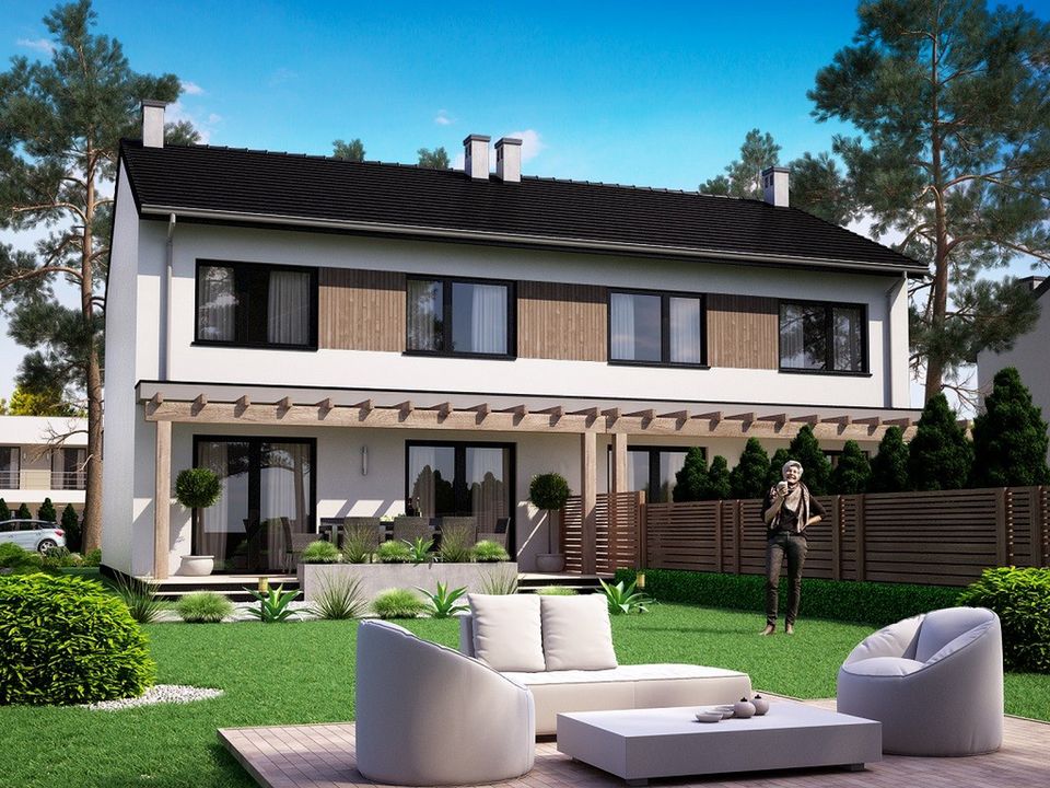 Dokumentacja zabezpieczona jest specjalną plombą, której usunięcie uniemożliwi jej zwrot oraz wymianę. Zapraszamy do zamówienia przed zakupem rysunków szczegółowych projektu oraz analizy posiadanej działki w celu upewnienia się, że wybrany projekt domu idealnie na nią pasuje. Projekt dostępny w konfiguracjach: bliźniak z segmentami lewym i prawym na osobnych dokumentacjach albo bliźniak na jednej dokumentacji albo jednorodzinny dwulokalowy albo w zabudowie szeregowej. Warianty: Projekt dostępny również w wersji szeregowej, złożonej z 3, 4, 5 albo 6 segmentów. W sprawie szczegółów zapraszamy do kontaktu!