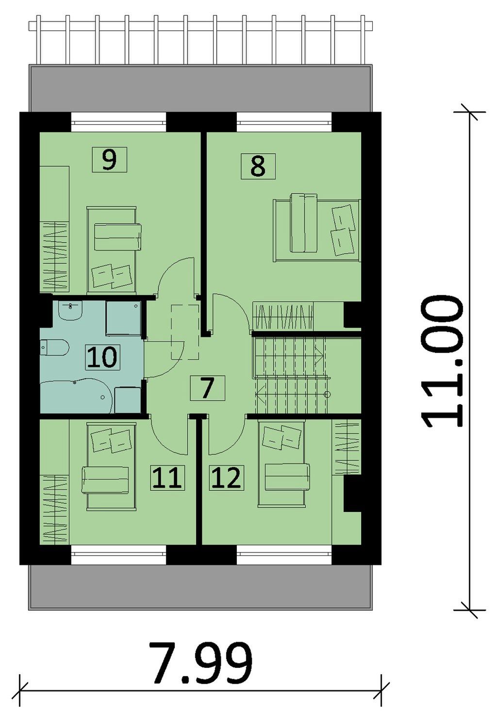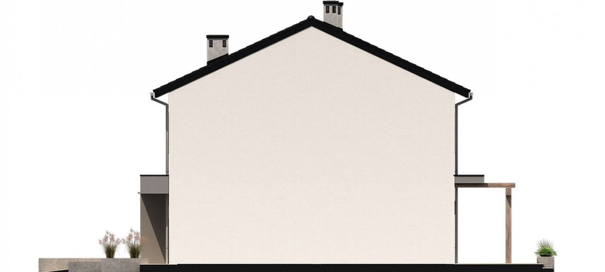 Graficzne opracowanie rzutów poglądowych widocznych na karcie projektu zostało wykonane przez Extradom.pl. Prezentowane przez Extradom.pl wizualizacje wykonane zostały przez autora projektu i należy poczytywać je jedynie za przykład i propozycję wykończenia, wizję architektoniczną autora projektu. Ostateczne wykończenie budynku może nastąpić na wiele sposobów. Szczegółowe rozwiązania zastosowane w oferowanej dokumentacji - w tym również ilość, lokalizacje i wygląd okien, drzwi, kominów - mogą w niewielkim stopniu różnić się od prezentowanej wizualizacji budynku.