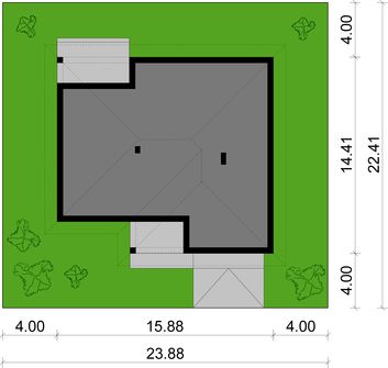Graficzne opracowanie rzutów poglądowych widocznych na karcie projektu zostało wykonane przez Extradom.pl. Prezentowane przez Extradom.pl wizualizacje wykonane zostały przez autora projektu i należy poczytywać je jedynie za przykład i propozycję wykończenia, wizję architektoniczną autora projektu. Ostateczne wykończenie budynku może nastąpić na wiele sposobów. Szczegółowe rozwiązania zastosowane w oferowanej dokumentacji - w tym również ilość, lokalizacje i wygląd okien, drzwi, kominów - mogą w niewielkim stopniu różnić się od prezentowanej wizualizacji budynku.