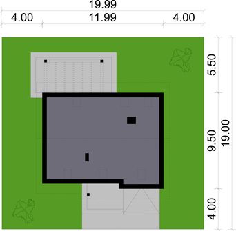 Graficzne opracowanie rzutów poglądowych widocznych na karcie projektu zostało wykonane przez Extradom.pl. Prezentowane przez Extradom.pl wizualizacje wykonane zostały przez autora projektu i należy poczytywać je jedynie za przykład i propozycję wykończenia, wizję architektoniczną autora projektu. Ostateczne wykończenie budynku może nastąpić na wiele sposobów. Szczegółowe rozwiązania zastosowane w oferowanej dokumentacji - w tym również ilość, lokalizacje i wygląd okien, drzwi, kominów - mogą w niewielkim stopniu różnić się od prezentowanej wizualizacji budynku.