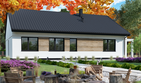 Graficzne opracowanie rzutów poglądowych widocznych na karcie projektu zostało wykonane przez Extradom.pl. Prezentowane przez Extradom.pl wizualizacje wykonane zostały przez autora projektu i należy poczytywać je jedynie za przykład i propozycję wykończenia, wizję architektoniczną autora projektu. Ostateczne wykończenie budynku może nastąpić na wiele sposobów. Szczegółowe rozwiązania zastosowane w oferowanej dokumentacji - w tym również ilość, lokalizacje i wygląd okien, drzwi, kominów - mogą w niewielkim stopniu różnić się od prezentowanej wizualizacji budynku.