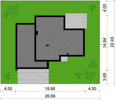 Graficzne opracowanie rzutów poglądowych widocznych na karcie projektu zostało wykonane przez Extradom.pl. Prezentowane przez Extradom.pl wizualizacje wykonane zostały przez autora projektu i należy poczytywać je jedynie za przykład i propozycję wykończenia, wizję architektoniczną autora projektu. Ostateczne wykończenie budynku może nastąpić na wiele sposobów. Szczegółowe rozwiązania zastosowane w oferowanej dokumentacji - w tym również ilość, lokalizacje i wygląd okien, drzwi, kominów - mogą w niewielkim stopniu różnić się od prezentowanej wizualizacji budynku.