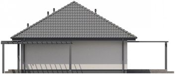 Graficzne opracowanie rzutów poglądowych widocznych na karcie projektu zostało wykonane przez Extradom.pl. Prezentowane przez Extradom.pl wizualizacje wykonane zostały przez autora projektu i należy poczytywać je jedynie za przykład i propozycję wykończenia, wizję architektoniczną autora projektu. Ostateczne wykończenie budynku może nastąpić na wiele sposobów. Szczegółowe rozwiązania zastosowane w oferowanej dokumentacji - w tym również ilość, lokalizacje i wygląd okien, drzwi, kominów - mogą w niewielkim stopniu różnić się od prezentowanej wizualizacji budynku.