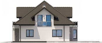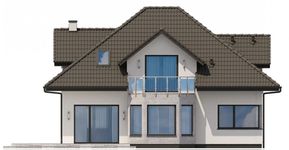 Graficzne opracowanie rzutów poglądowych widocznych na karcie projektu zostało wykonane przez Extradom.pl. Prezentowane przez Extradom.pl wizualizacje wykonane zostały przez autora projektu i należy poczytywać je jedynie za przykład i propozycję wykończenia, wizję architektoniczną autora projektu. Ostateczne wykończenie budynku może nastąpić na wiele sposobów. Szczegółowe rozwiązania zastosowane w oferowanej dokumentacji - w tym również ilość, lokalizacje i wygląd okien, drzwi, kominów - mogą w niewielkim stopniu różnić się od prezentowanej wizualizacji budynku.