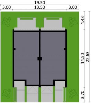Projekt jest w fazie koncepcji. Przy zakupie projektu należy zapłacić 50% zaliczki. Zaliczka jest bezzwrotna w przypadku zwrotu lub rezygnacji z zamówienia. Dokumentacja zabezpieczona jest specjalną plombą, której usunięcie uniemożliwi jej zwrot oraz wymianę. Zapraszamy do zamówienia przed zakupem rysunków szczegółowych projektu oraz analizy posiadanej działki w celu upewnienia się, że wybrany projekt domu idealnie na nią pasuje. Projekt dostępny w konfiguracjach: bliźniak z segmentami lewym i prawym na osobnych dokumentacjach albo bliźniak na jednej dokumentacji albo jednorodzinny dwulokalowy albo w zabudowie szeregowej.
