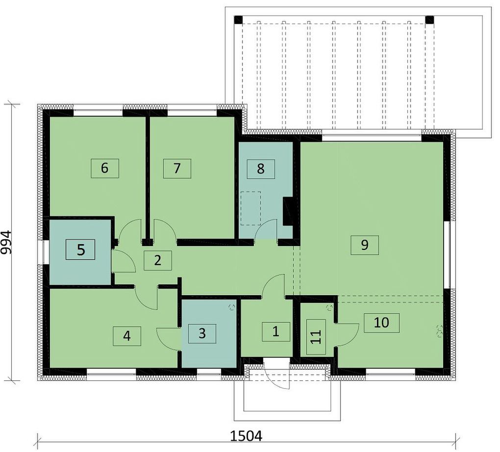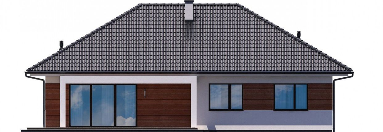 Graficzne opracowanie rzutów poglądowych widocznych na karcie projektu zostało wykonane przez Extradom.pl. Prezentowane przez Extradom.pl wizualizacje wykonane zostały przez autora projektu i należy poczytywać je jedynie za przykład i propozycję wykończenia, wizję architektoniczną autora projektu. Ostateczne wykończenie budynku może nastąpić na wiele sposobów. Szczegółowe rozwiązania zastosowane w oferowanej dokumentacji - w tym również ilość, lokalizacje i wygląd okien, drzwi, kominów - mogą w niewielkim stopniu różnić się od prezentowanej wizualizacji budynku.