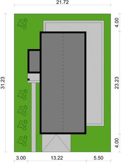 Graficzne opracowanie rzutów poglądowych widocznych na karcie projektu zostało wykonane przez Extradom.pl. Prezentowane przez Extradom.pl wizualizacje wykonane zostały przez autora projektu i należy poczytywać je jedynie za przykład i propozycję wykończenia, wizję architektoniczną autora projektu. Ostateczne wykończenie budynku może nastąpić na wiele sposobów. Szczegółowe rozwiązania zastosowane w oferowanej dokumentacji - w tym również ilość, lokalizacje i wygląd okien, drzwi, kominów - mogą w niewielkim stopniu różnić się od prezentowanej wizualizacji budynku.