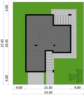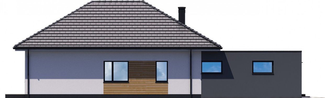 Graficzne opracowanie rzutów poglądowych widocznych na karcie projektu zostało wykonane przez Extradom.pl. Prezentowane przez Extradom.pl wizualizacje wykonane zostały przez autora projektu i należy poczytywać je jedynie za przykład i propozycję wykończenia, wizję architektoniczną autora projektu. Ostateczne wykończenie budynku może nastąpić na wiele sposobów. Szczegółowe rozwiązania zastosowane w oferowanej dokumentacji - w tym również ilość, lokalizacje i wygląd okien, drzwi, kominów - mogą w niewielkim stopniu różnić się od prezentowanej wizualizacji budynku.