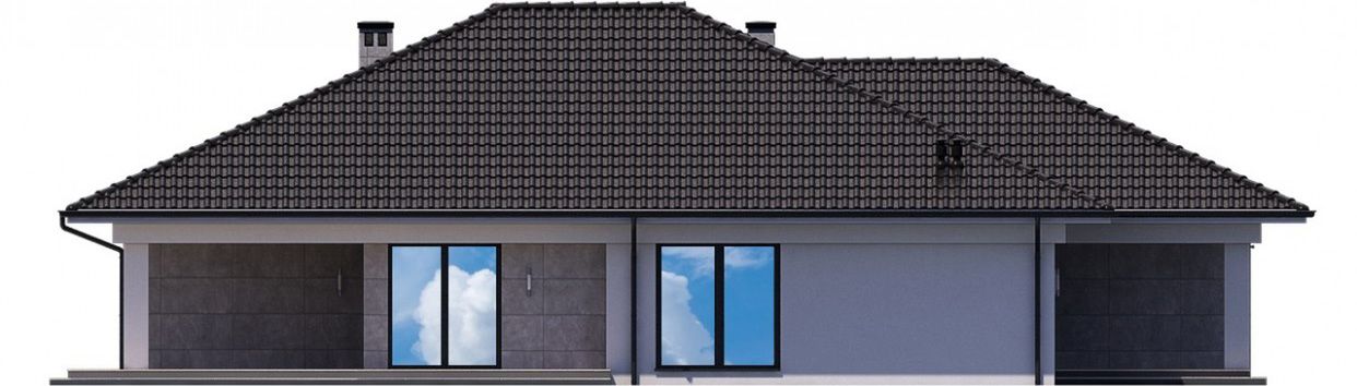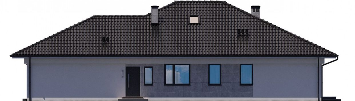 Graficzne opracowanie rzutów poglądowych widocznych na karcie projektu zostało wykonane przez Extradom.pl. Prezentowane przez Extradom.pl wizualizacje wykonane zostały przez autora projektu i należy poczytywać je jedynie za przykład i propozycję wykończenia, wizję architektoniczną autora projektu. Ostateczne wykończenie budynku może nastąpić na wiele sposobów. Szczegółowe rozwiązania zastosowane w oferowanej dokumentacji - w tym również ilość, lokalizacje i wygląd okien, drzwi, kominów - mogą w niewielkim stopniu różnić się od prezentowanej wizualizacji budynku.