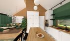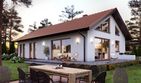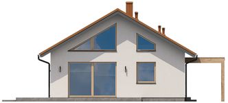 Graficzne opracowanie rzutów poglądowych widocznych na karcie projektu zostało wykonane przez Extradom.pl. Prezentowane przez Extradom.pl wizualizacje wykonane zostały przez autora projektu i należy poczytywać je jedynie za przykład i propozycję wykończenia, wizję architektoniczną autora projektu. Ostateczne wykończenie budynku może nastąpić na wiele sposobów. Szczegółowe rozwiązania zastosowane w oferowanej dokumentacji - w tym również ilość, lokalizacje i wygląd okien, drzwi, kominów - mogą w niewielkim stopniu różnić się od prezentowanej wizualizacji budynku.