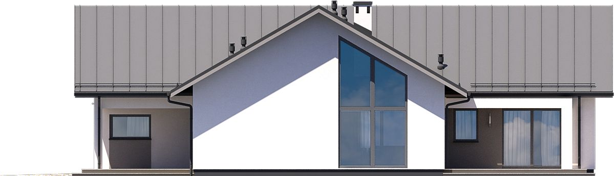Graficzne opracowanie rzutów poglądowych widocznych na karcie projektu zostało wykonane przez Extradom.pl. Prezentowane przez Extradom.pl wizualizacje wykonane zostały przez autora projektu i należy poczytywać je jedynie za przykład i propozycję wykończenia, wizję architektoniczną autora projektu. Ostateczne wykończenie budynku może nastąpić na wiele sposobów. Szczegółowe rozwiązania zastosowane w oferowanej dokumentacji - w tym również ilość, lokalizacje i wygląd okien, drzwi, kominów - mogą w niewielkim stopniu różnić się od prezentowanej wizualizacji budynku.