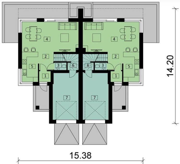 Projekt jest w fazie koncepcji. Przy zakupie projektu należy zapłacić 50% zaliczki. Zaliczka jest bezzwrotna w przypadku zwrotu lub rezygnacji z zamówienia. Projekt stanowi aktualną, pełną dokumentację zawierającą część architektoniczno-budowlaną, konstrukcyjno-wykonawczą, instalacji wewnętrznych, elektrycznych, charakterystykę energetyczną oraz uprawnienia projektantów. Projekt dostępny w konfiguracjach: bliźniak z segmentami lewym i prawym na osobnych dokumentacjach albo bliźniak na jednej dokumentacji albo jednorodzinny dwulokalowy. Dokumentacja zabezpieczona jest specjalną plombą, której usunięcie uniemożliwi jej zwrot oraz wymianę. Zapraszamy do zamówienia przed zakupem rysunków szczegółowych projektu oraz analizy posiadanej działki w celu upewnienia się, że wybrany projekt domu idealnie na nią pasuje.
