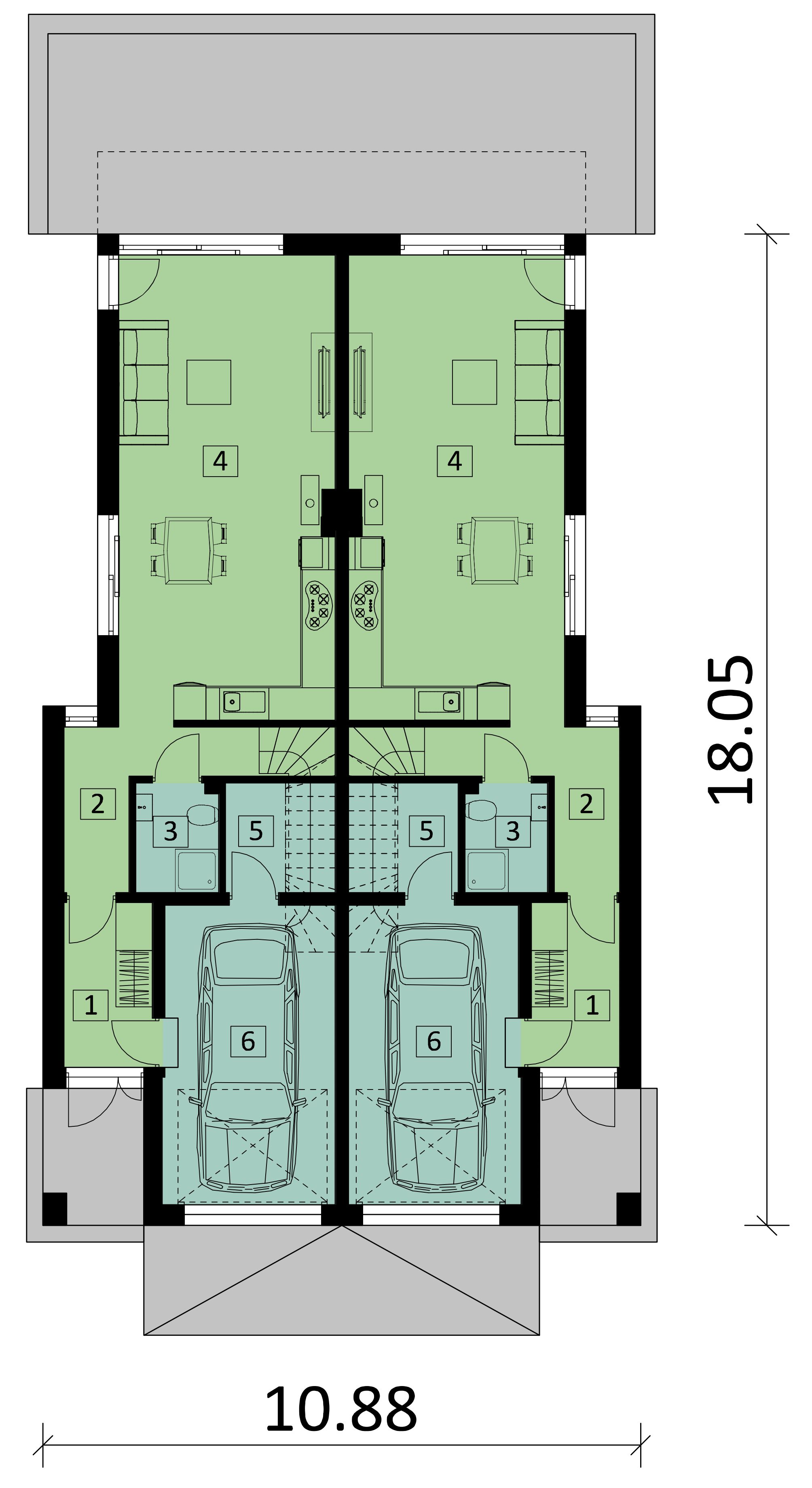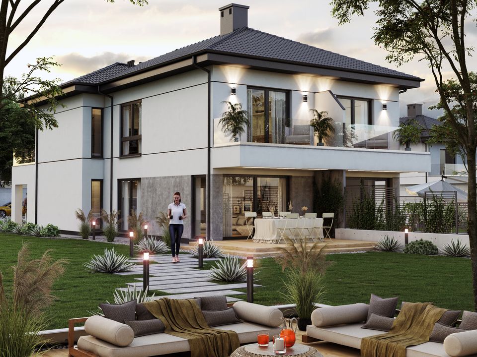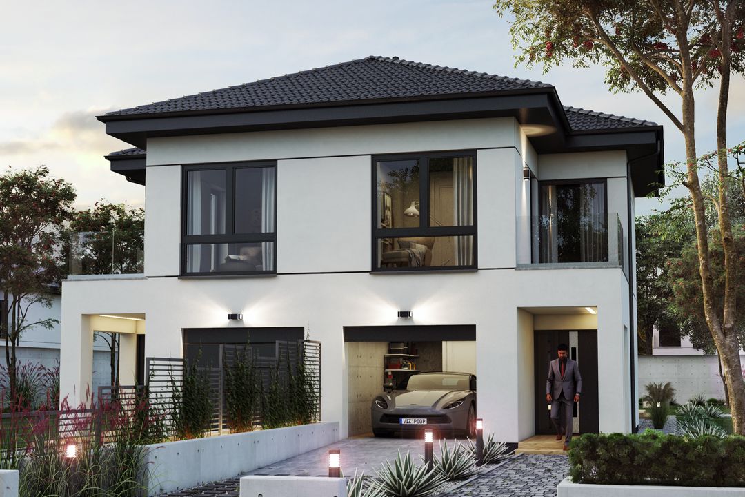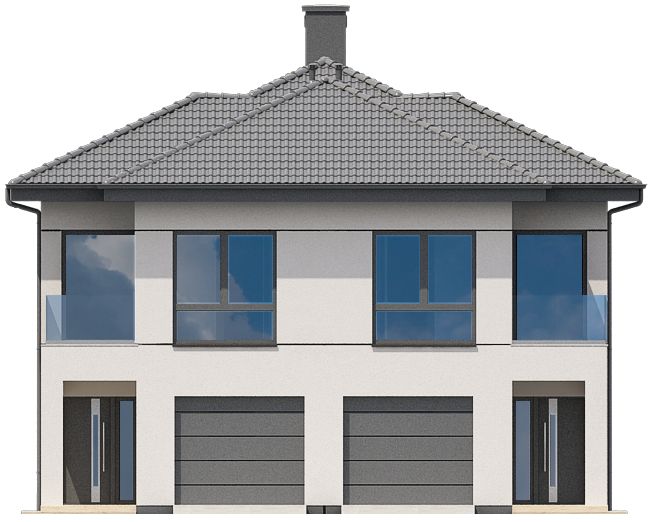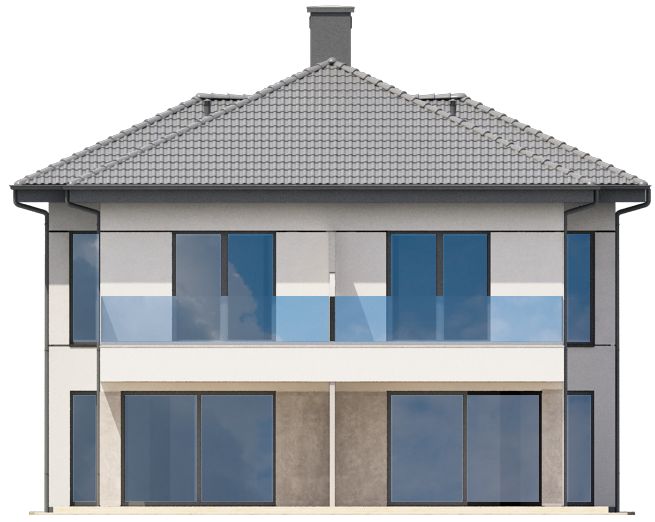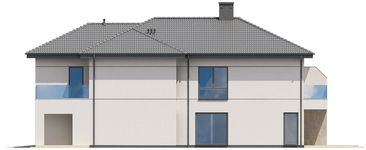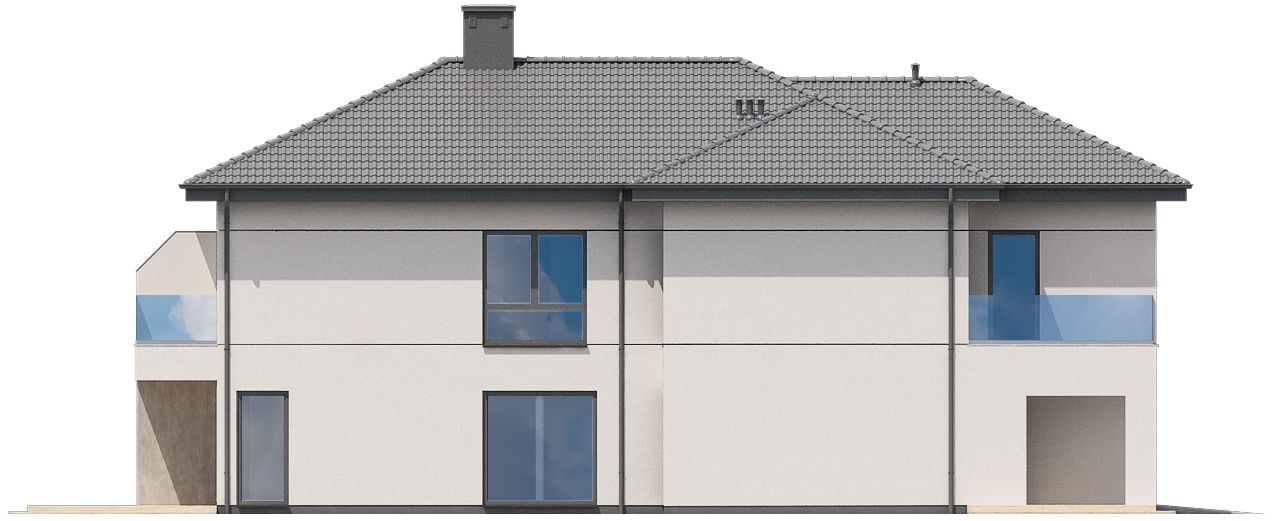 Graficzne opracowanie rzutów poglądowych widocznych na karcie projektu zostało wykonane przez Extradom.pl. Prezentowane przez Extradom.pl wizualizacje wykonane zostały przez autora projektu i należy poczytywać je jedynie za przykład i propozycję wykończenia, wizję architektoniczną autora projektu. Ostateczne wykończenie budynku może nastąpić na wiele sposobów. Szczegółowe rozwiązania zastosowane w oferowanej dokumentacji - w tym również ilość, lokalizacje i wygląd okien, drzwi, kominów - mogą w niewielkim stopniu różnić się od prezentowanej wizualizacji budynku.