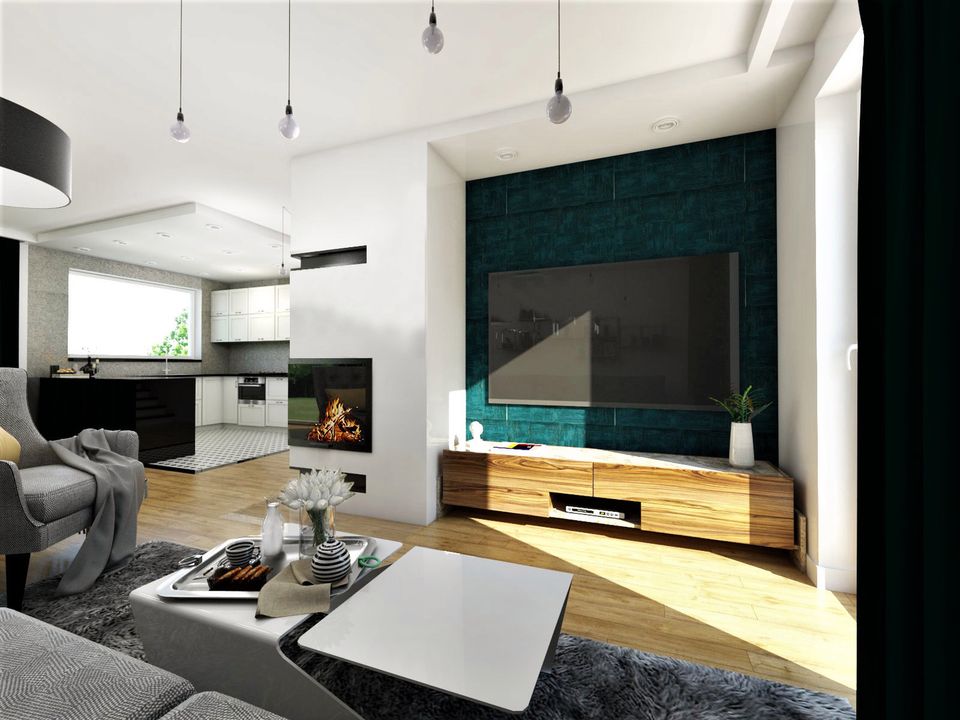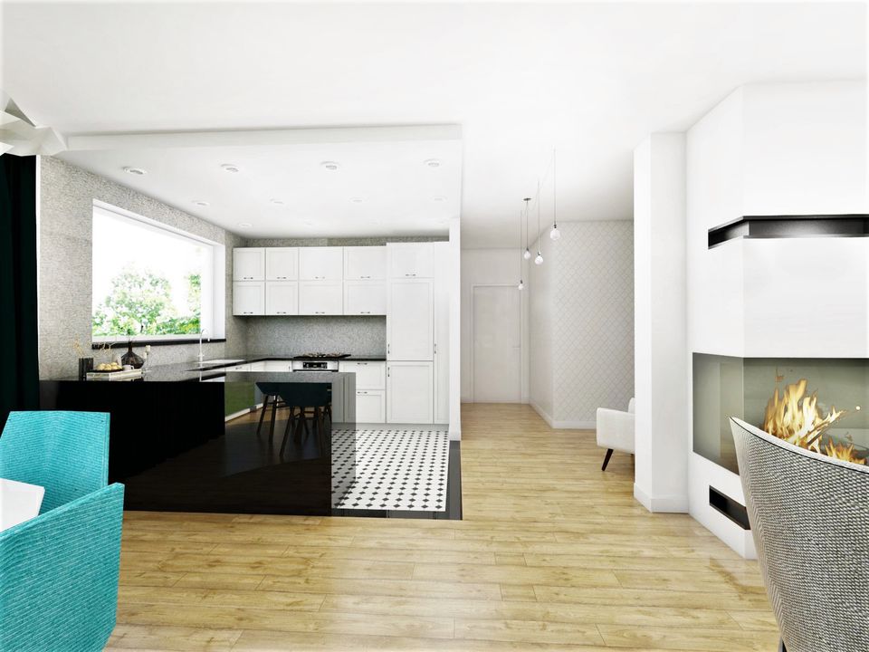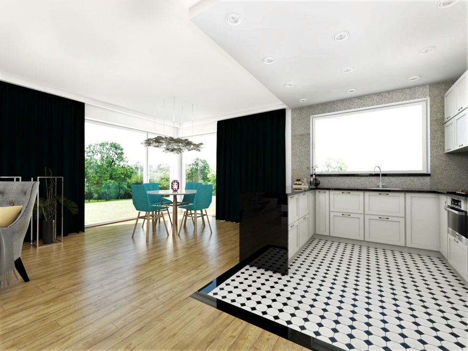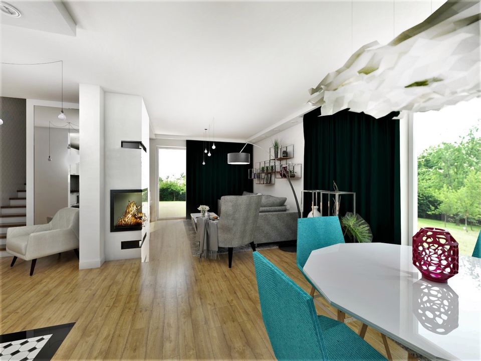 Graficzne opracowanie rzutów poglądowych widocznych na karcie projektu zostało wykonane przez Extradom.pl. Prezentowane przez Extradom.pl wizualizacje wykonane zostały przez autora projektu i należy poczytywać je jedynie za przykład i propozycję wykończenia, wizję architektoniczną autora projektu. Ostateczne wykończenie budynku może nastąpić na wiele sposobów. Szczegółowe rozwiązania zastosowane w oferowanej dokumentacji - w tym również ilość, lokalizacje i wygląd okien, drzwi, kominów - mogą w niewielkim stopniu różnić się od prezentowanej wizualizacji budynku.