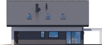Graficzne opracowanie rzutów poglądowych widocznych na karcie projektu zostało wykonane przez Extradom.pl. Prezentowane przez Extradom.pl wizualizacje wykonane zostały przez autora projektu i należy poczytywać je jedynie za przykład i propozycję wykończenia, wizję architektoniczną autora projektu. Ostateczne wykończenie budynku może nastąpić na wiele sposobów. Szczegółowe rozwiązania zastosowane w oferowanej dokumentacji - w tym również ilość, lokalizacje i wygląd okien, drzwi, kominów - mogą w niewielkim stopniu różnić się od prezentowanej wizualizacji budynku.