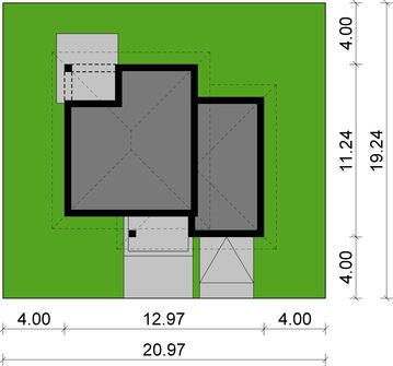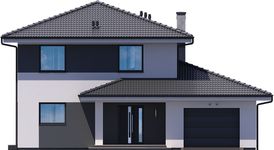 Graficzne opracowanie rzutów poglądowych widocznych na karcie projektu zostało wykonane przez Extradom.pl. Prezentowane przez Extradom.pl wizualizacje wykonane zostały przez autora projektu i należy poczytywać je jedynie za przykład i propozycję wykończenia, wizję architektoniczną autora projektu. Ostateczne wykończenie budynku może nastąpić na wiele sposobów. Szczegółowe rozwiązania zastosowane w oferowanej dokumentacji - w tym również ilość, lokalizacje i wygląd okien, drzwi, kominów - mogą w niewielkim stopniu różnić się od prezentowanej wizualizacji budynku.
