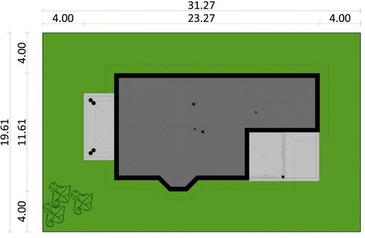 Graficzne opracowanie rzutów poglądowych widocznych na karcie projektu zostało wykonane przez Extradom.pl. Prezentowane przez Extradom.pl wizualizacje wykonane zostały przez autora projektu i należy poczytywać je jedynie za przykład i propozycję wykończenia, wizję architektoniczną autora projektu. Ostateczne wykończenie budynku może nastąpić na wiele sposobów. Szczegółowe rozwiązania zastosowane w oferowanej dokumentacji - w tym również ilość, lokalizacje i wygląd okien, drzwi, kominów - mogą w niewielkim stopniu różnić się od prezentowanej wizualizacji budynku.