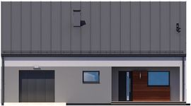 Graficzne opracowanie rzutów poglądowych widocznych na karcie projektu zostało wykonane przez Extradom.pl. Prezentowane przez Extradom.pl wizualizacje wykonane zostały przez autora projektu i należy poczytywać je jedynie za przykład i propozycję wykończenia, wizję architektoniczną autora projektu. Ostateczne wykończenie budynku może nastąpić na wiele sposobów. Szczegółowe rozwiązania zastosowane w oferowanej dokumentacji - w tym również ilość, lokalizacje i wygląd okien, drzwi, kominów - mogą w niewielkim stopniu różnić się od prezentowanej wizualizacji budynku.