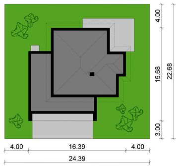 Graficzne opracowanie rzutów poglądowych widocznych na karcie projektu zostało wykonane przez Extradom.pl. Prezentowane przez Extradom.pl wizualizacje wykonane zostały przez autora projektu i należy poczytywać je jedynie za przykład i propozycję wykończenia, wizję architektoniczną autora projektu. Ostateczne wykończenie budynku może nastąpić na wiele sposobów. Szczegółowe rozwiązania zastosowane w oferowanej dokumentacji - w tym również ilość, lokalizacje i wygląd okien, drzwi, kominów - mogą w niewielkim stopniu różnić się od prezentowanej wizualizacji budynku.