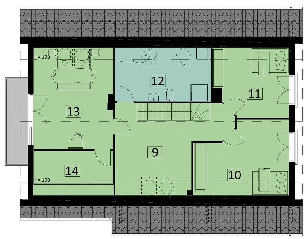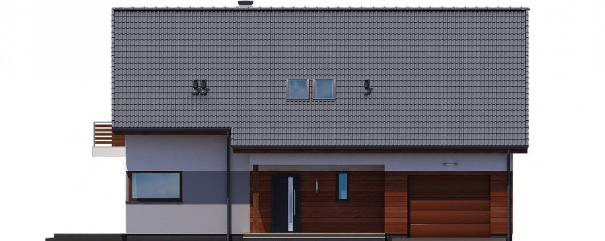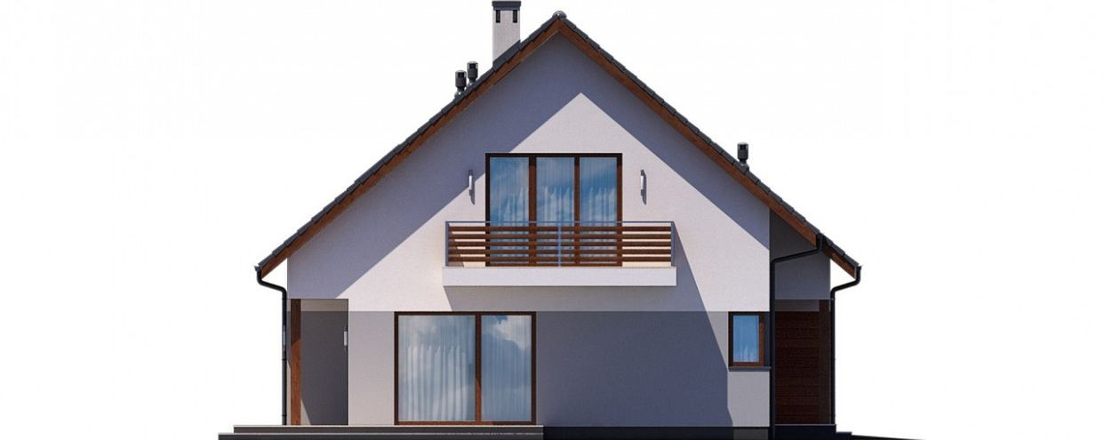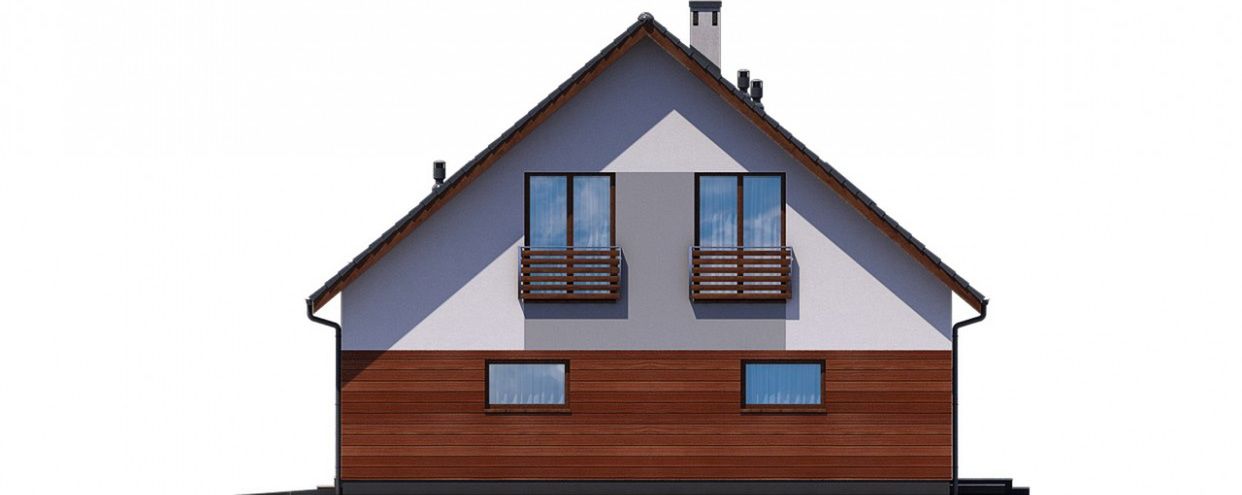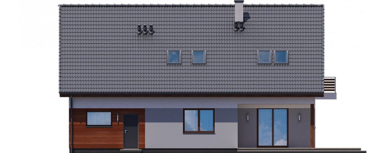 Graficzne opracowanie rzutów poglądowych widocznych na karcie projektu zostało wykonane przez Extradom.pl. Prezentowane przez Extradom.pl wizualizacje wykonane zostały przez autora projektu i należy poczytywać je jedynie za przykład i propozycję wykończenia, wizję architektoniczną autora projektu. Ostateczne wykończenie budynku może nastąpić na wiele sposobów. Szczegółowe rozwiązania zastosowane w oferowanej dokumentacji - w tym również ilość, lokalizacje i wygląd okien, drzwi, kominów - mogą w niewielkim stopniu różnić się od prezentowanej wizualizacji budynku.