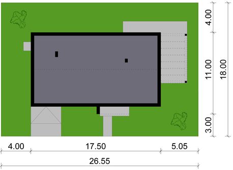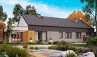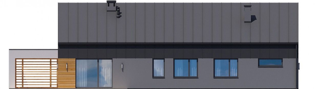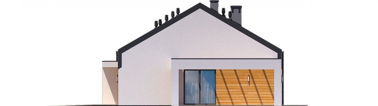 Graficzne opracowanie rzutów poglądowych widocznych na karcie projektu zostało wykonane przez Extradom.pl. Prezentowane przez Extradom.pl wizualizacje wykonane zostały przez autora projektu i należy poczytywać je jedynie za przykład i propozycję wykończenia, wizję architektoniczną autora projektu. Ostateczne wykończenie budynku może nastąpić na wiele sposobów. Szczegółowe rozwiązania zastosowane w oferowanej dokumentacji - w tym również ilość, lokalizacje i wygląd okien, drzwi, kominów - mogą w niewielkim stopniu różnić się od prezentowanej wizualizacji budynku.
