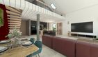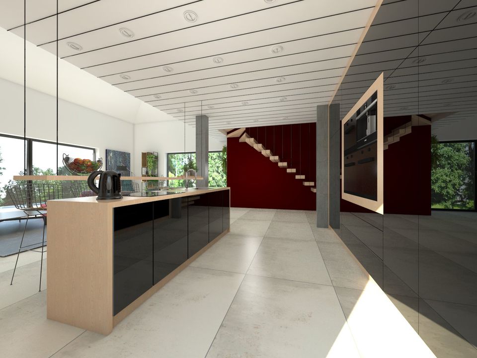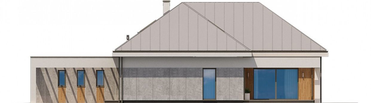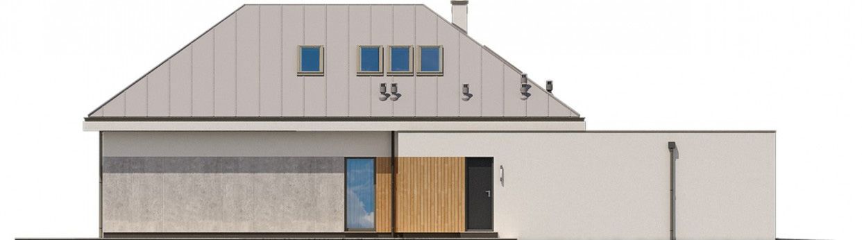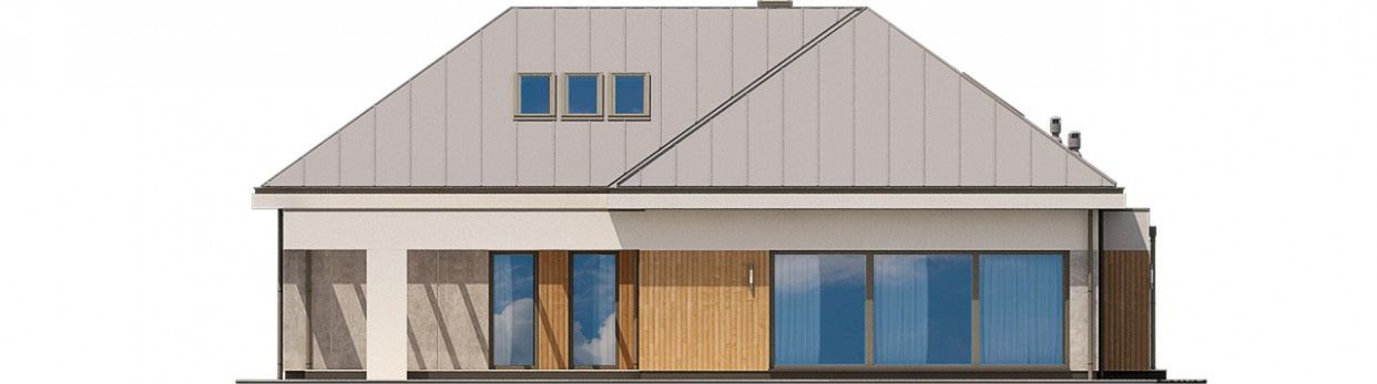 Graficzne opracowanie rzutów poglądowych widocznych na karcie projektu zostało wykonane przez Extradom.pl. Prezentowane przez Extradom.pl wizualizacje wykonane zostały przez autora projektu i należy poczytywać je jedynie za przykład i propozycję wykończenia, wizję architektoniczną autora projektu. Ostateczne wykończenie budynku może nastąpić na wiele sposobów. Szczegółowe rozwiązania zastosowane w oferowanej dokumentacji - w tym również ilość, lokalizacje i wygląd okien, drzwi, kominów - mogą w niewielkim stopniu różnić się od prezentowanej wizualizacji budynku.
