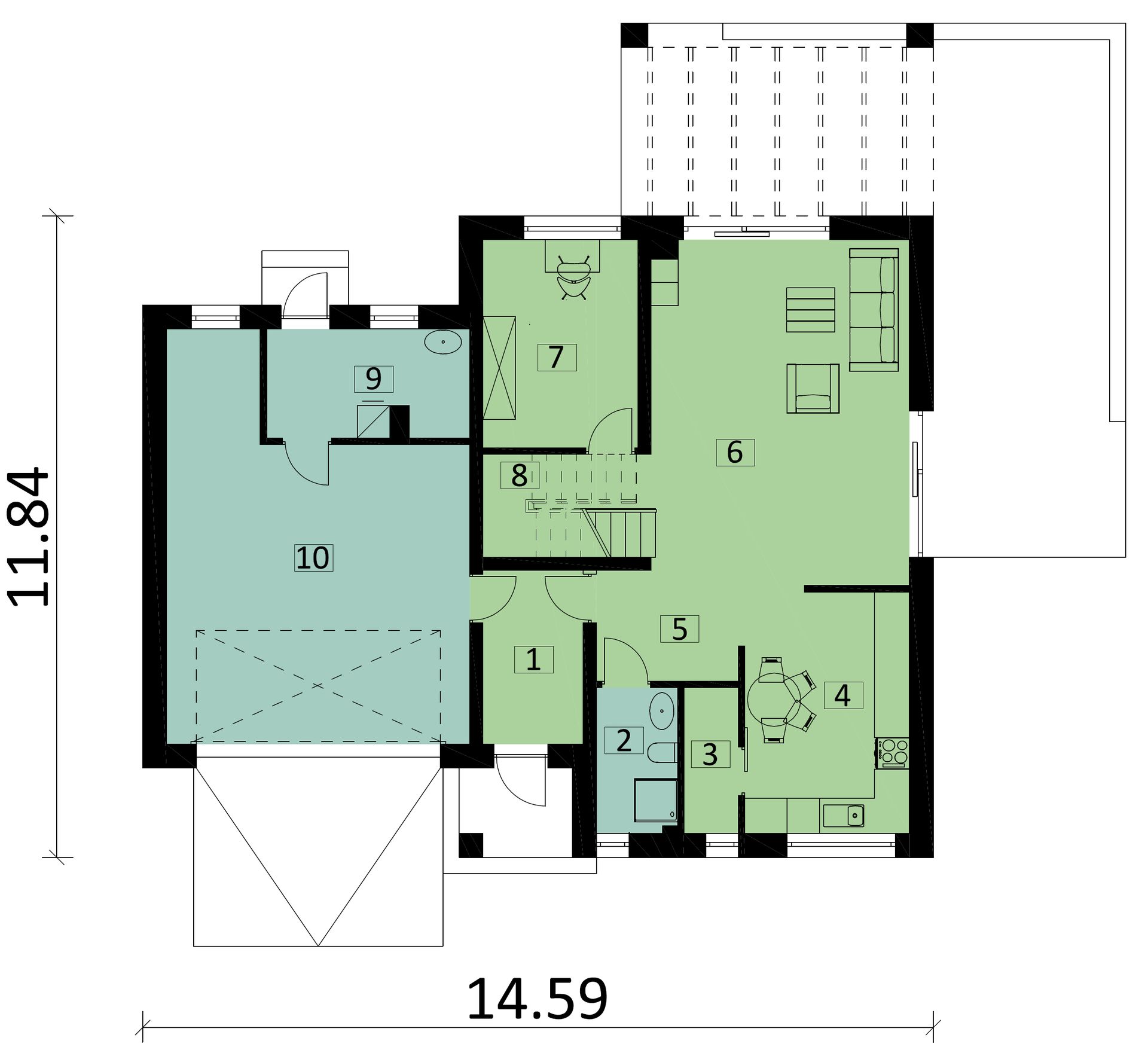 Projekt stanowi aktualną, pełną dokumentację zawierającą część architektoniczno-budowlaną, konstrukcyjno-wykonawczą, instalacji wewnętrznych, elektrycznych, charakterystykę energetyczną oraz uprawnienia projektantów. Dokumentacja zabezpieczona jest specjalną plombą, której usunięcie uniemożliwi jej zwrot oraz wymianę. Zapraszamy do zamówienia przed zakupem rysunków szczegółowych projektu oraz analizy posiadanej działki w celu upewnienia się, że wybrany projekt domu idealnie na nią pasuje.