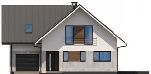 Graficzne opracowanie rzutów poglądowych widocznych na karcie projektu zostało wykonane przez Extradom.pl. Prezentowane przez Extradom.pl wizualizacje wykonane zostały przez autora projektu i należy poczytywać je jedynie za przykład i propozycję wykończenia, wizję architektoniczną autora projektu. Ostateczne wykończenie budynku może nastąpić na wiele sposobów. Szczegółowe rozwiązania zastosowane w oferowanej dokumentacji - w tym również ilość, lokalizacje i wygląd okien, drzwi, kominów - mogą w niewielkim stopniu różnić się od prezentowanej wizualizacji budynku.